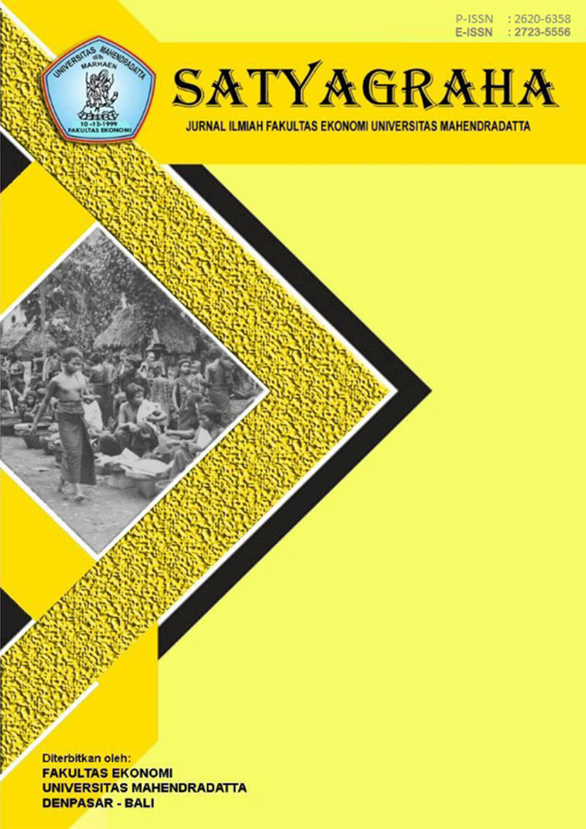 Jurnal Ilmiah SatyagrahaJurnal ini diterbitkan secara berkala dua kali dalam setahun Pebruari dan Agustus. Jurnal memuat artikel ilmiah hasil penelitian tentang ekonomi dan bisnis yang meliputi manajemen, akuntansi, perbankan, asuransi, pemasaran, kewirausahaan dan koperasi yang ditulis dalam bahasa Indonesia maupun bahasa Inggris. Jurnal ini diterbitkan oleh Fakultas Ekonomi dan Bisnis Universitas Mahendradatta. Puji syukur kepada Tuhan Yang Maha Esa, melalui surat Pemberitahuan bertanggal 13 November 2024, yang berisikan tentang Keputusan Direktur Jendral Pendidikan Tinggi, Riset Dan Teknologi Nomor 177/E/KPT/2024 tanggal 15 Oktober 2024 Tentang Peringkat Akreditasi Jurnal Ilmiah Periode II Tahun 2024, (point nomor 410) tercantum bahwa Jurnal Ilmiah Satyagraha mendapatkan Akreditasi peringkat 5 (SINTA 5) dan berlaku mulai Volume 6 Nomor 2 tahun 2023 sampai Volume 11 Nomor 1 tahun 2028 |